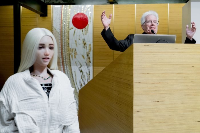 Forum internazionale sulla Intelligenza artificiale "I.A. al servizio della missione della Chiesa". Presentazione del Robot Desdemona. Roma, Pontificio Istituto Orientale, Aula Magna, 18 aprile 2024